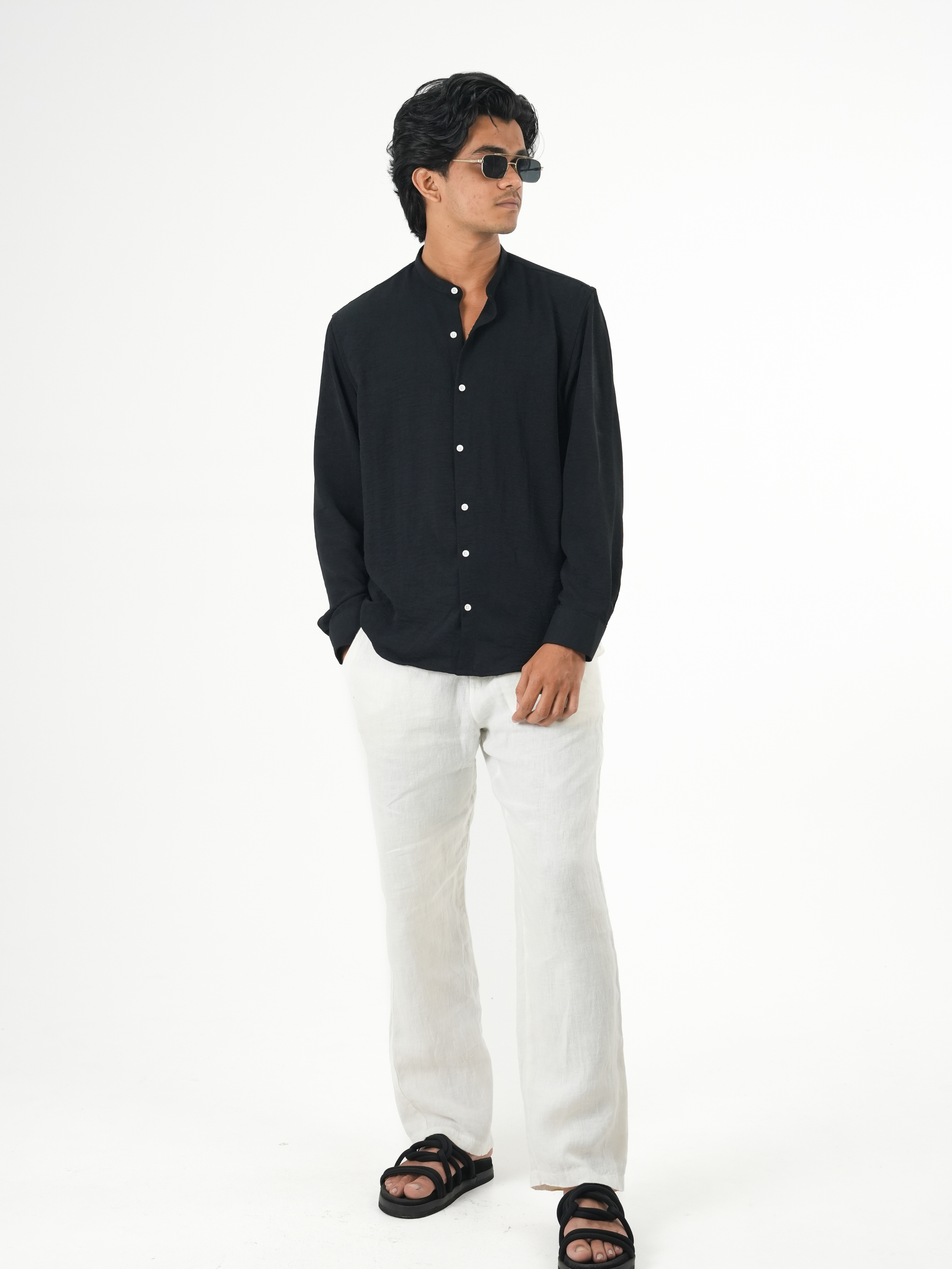 Regular Fit Chinese Collar Shirt IMP Fabirc Black